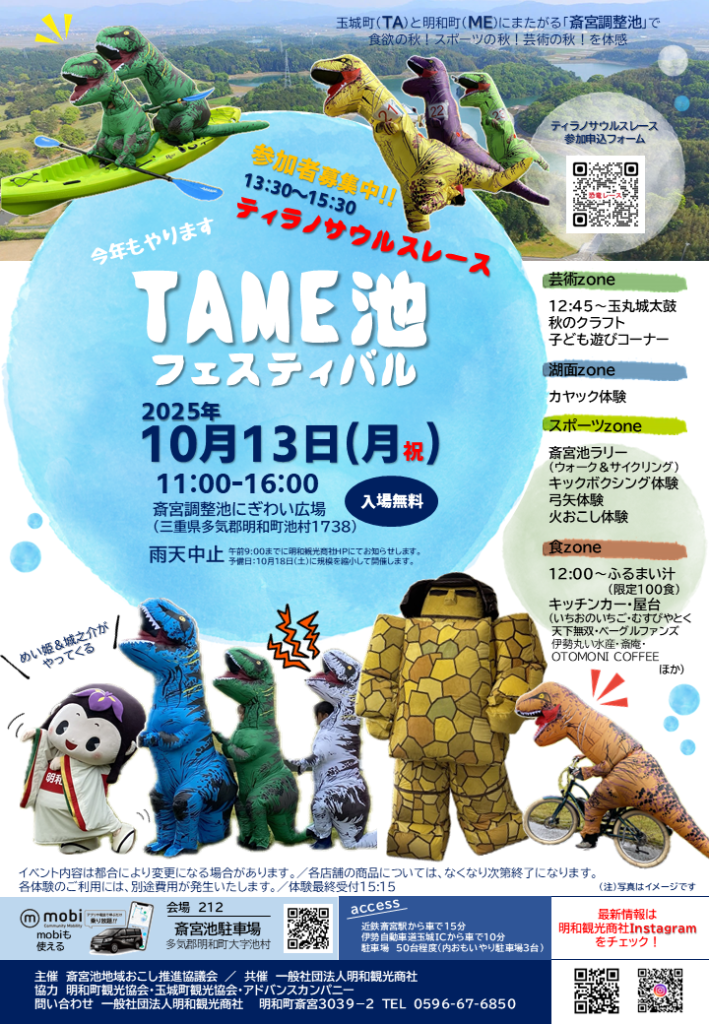 【プレスリリース】TAME池フェスティバル2025|明和町・玉城町|ティラノサウルスレースも開催