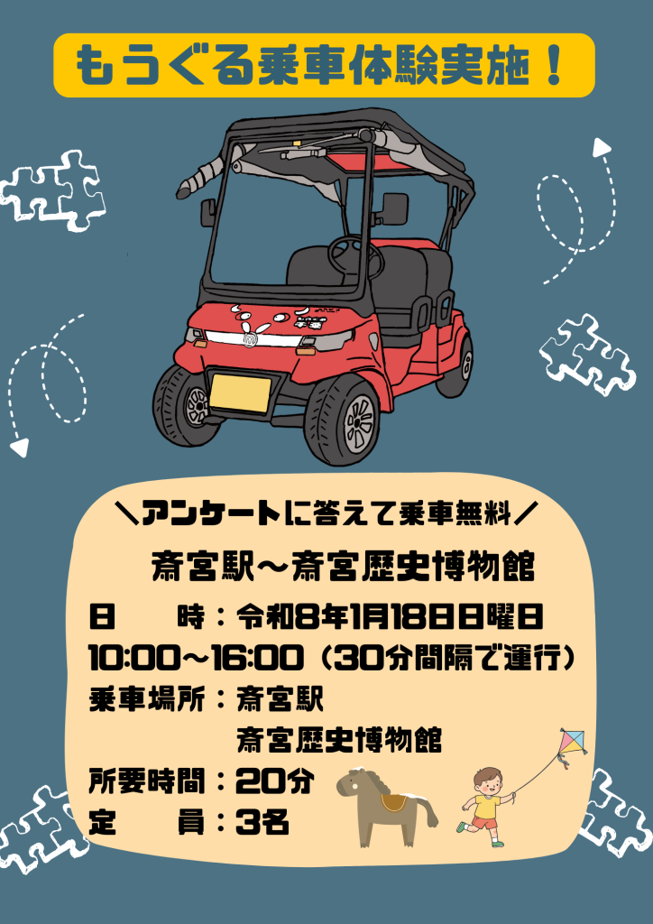 • 日時:令和8年1月18日(日)10:00〜16:00(30分間隔で運行)